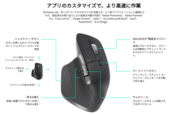 そこで、今回は少しでも効率よく日々の仕事ができるように、マウスやキーボードの大手「logicool」から発売されているハイエンドマウス「MX MASTER 3」をご用意しました!