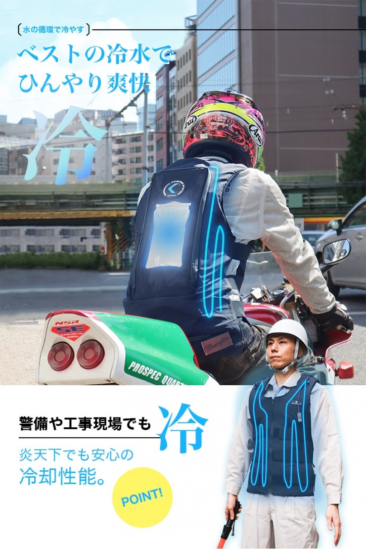 そこで、今回は、真夏のツーリングでも氷や水の力で体を冷却してくれる「人間用水冷システム」を搭載したベストをご用意しました!