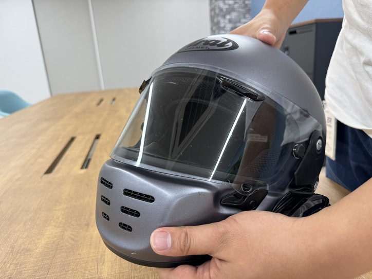 メーカー公式ホームページを見てみると3年でヘルメットを買い換えることが推奨されているので、ヘルメットの買い替えを考えたりするのですが、このアライのヘルメットはすごく気に入っていて、傷ついてきたシールドを曇らないシールドに変えてまだまだ使ってもいいのかなと思ったり。
