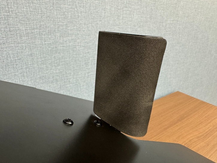 現在のデザインでは、ヘルメットの顎部分が台から少しはみ出すような形になり、奥にまだスペースの余裕があります。ヘルメットがもう少し奥にかかってくれると、スタンド下部への手の出し入れがしやすくなり、ヘルメット自体の安定感もさらに増すのではないかと感じました。
