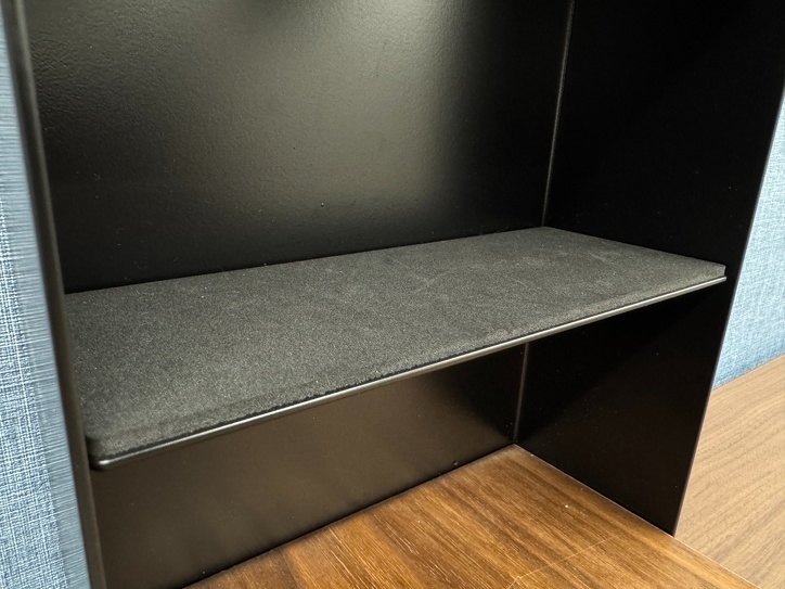 上段にはヘルメットを安定して置くことができ、中段には、鍵などの小物を置く棚があり、ここにもスポンジの保護材が貼られているため、鍵を置いてもカチャカチャと音が鳴らず、傷もつきにくい工夫がされています。