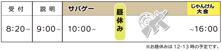 ※レンタルセットには、エアソフトガン、ゴーグル、当日使用するBB弾が含まれています。手ぶらでご来場が可能です!