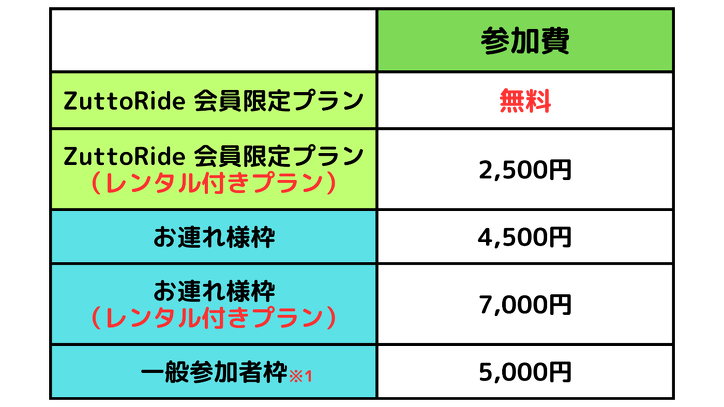 会員様お一人で参加は不安…という方のための「お連れ様枠」や、レンタル用品もご用意がございます!