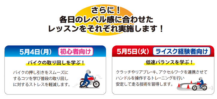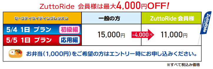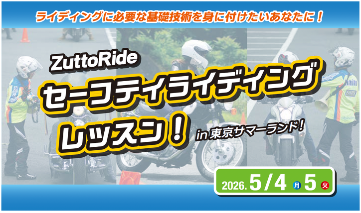 【5月4日・5日】ZuttoRide セーフティライディングレッスン【東京・サマーランド】