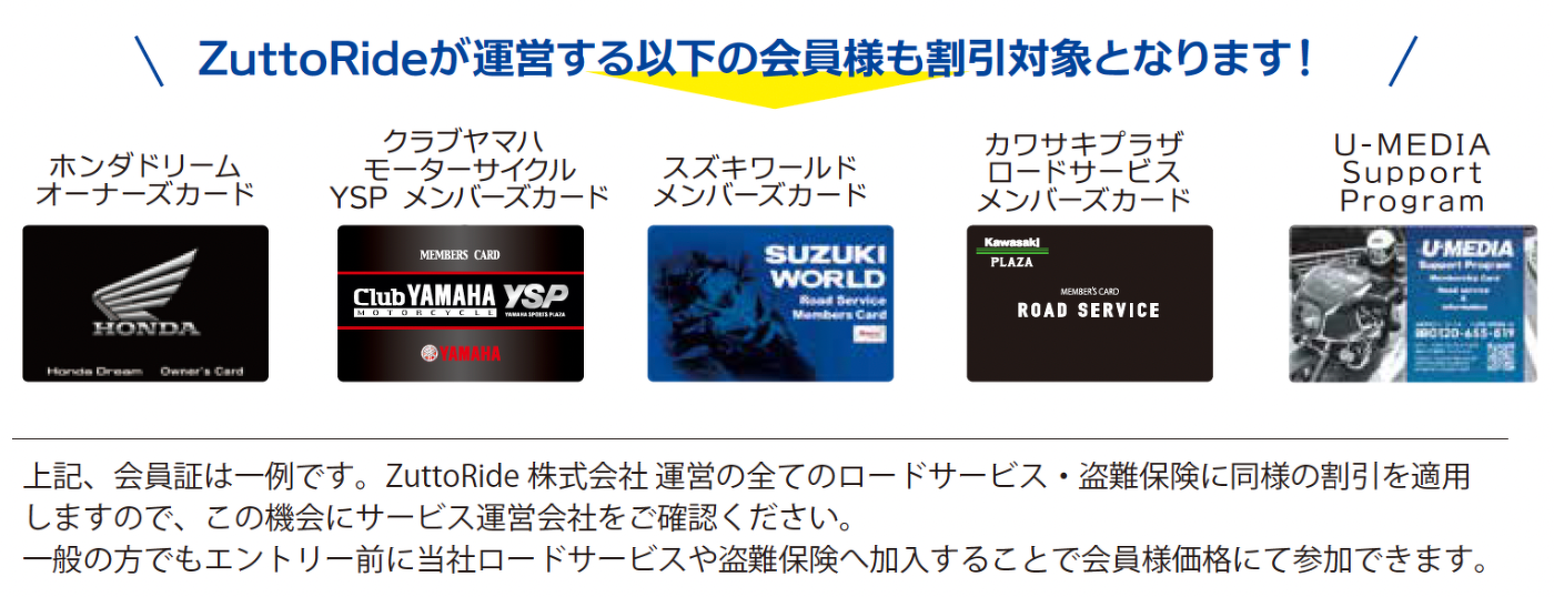 ※一般の方でも、イベントのエントリー前に当社ロードサービスや盗難保険へ加入することで、優待価格にて参加できます。