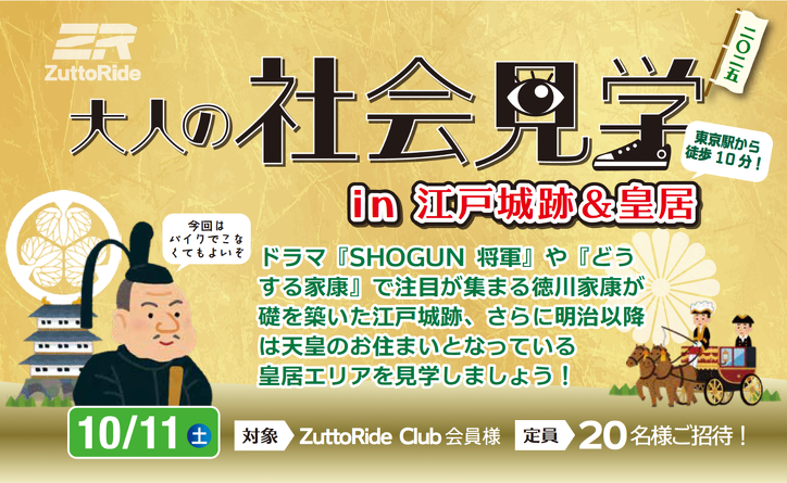 【開催終了】【10月11日】ZuttoRide 大人の社会見学 in 江戸城跡&皇居【ZuttoRide Club会員限定】