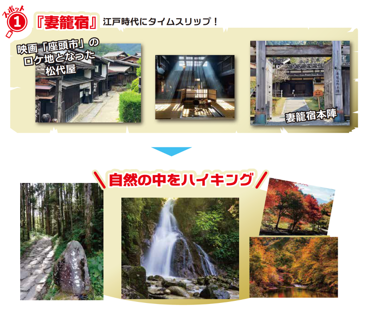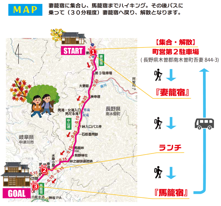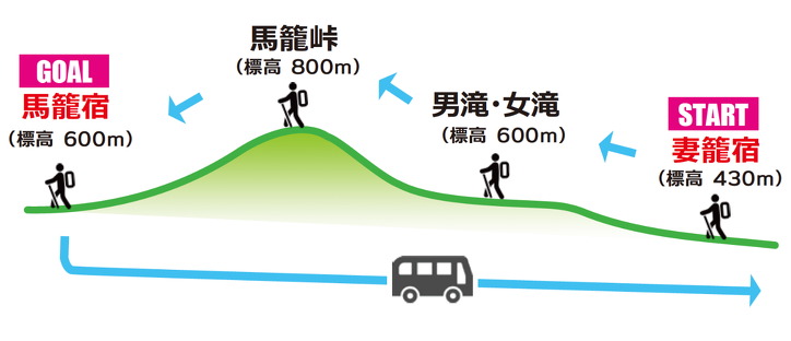 その妻籠宿と馬籠宿をつなぐ全長約9km(所要時間:約3 時間)の道のりが
