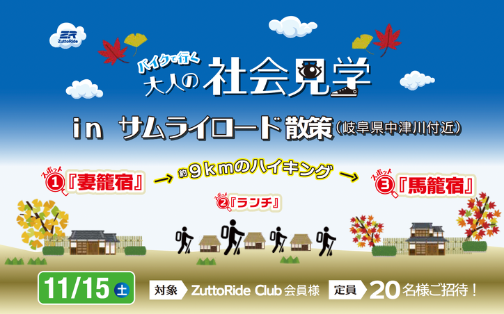 【11月15日】ZuttoRide バイクで行く 大人の社会見学 in サムライロード散策【ZuttoRide Club会員限定】