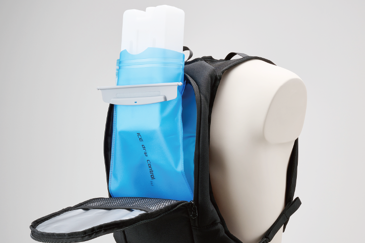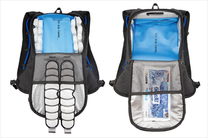 こちらの水冷ベストは、冷やした付属の保冷剤と水を入れて背中に背負って