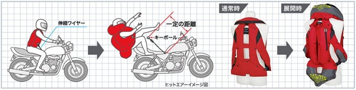 バイクからライダーが飛ばされた瞬間にエアバッグが展開します!