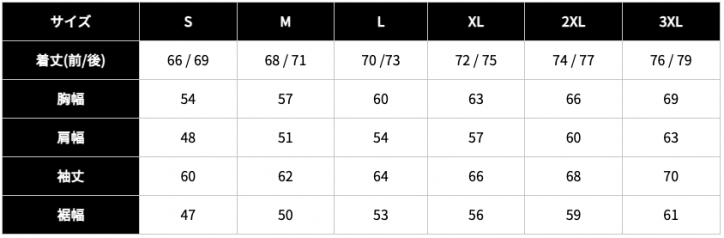 HDS-MSサイズスペック(JPサイズ / 単位:cm)