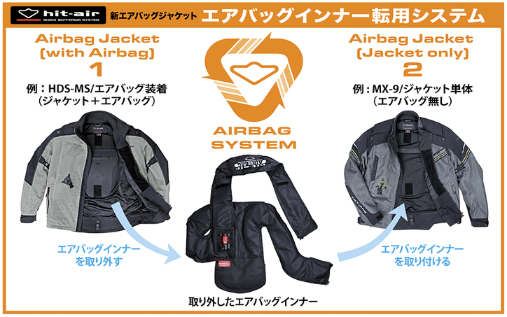 装着可能な新ジャケットであればエアバッグインナーを付け替えて使用することができます。