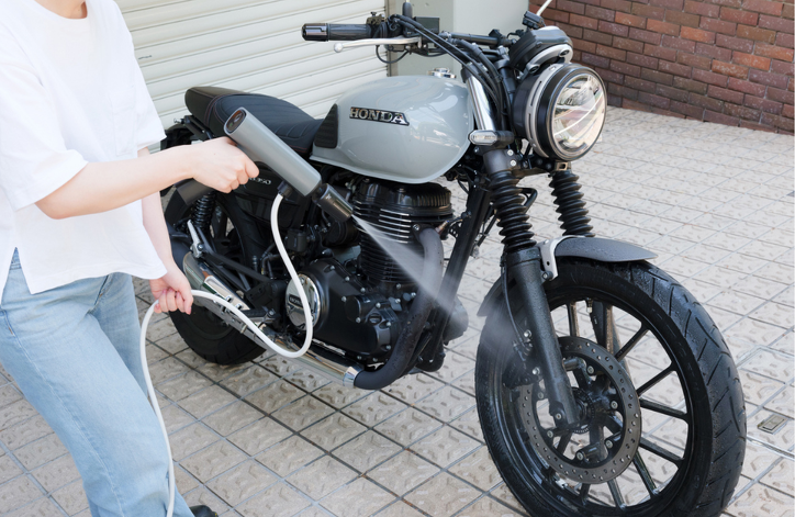一般的な高圧洗浄機だとバイクパーツにダメージを与える可能性があり使えないという