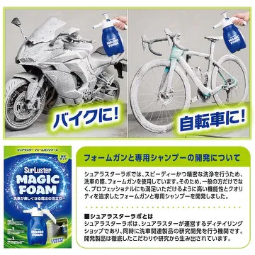 「シュアラスター マジックフォームシリーズ」のフォームガンと組み合わせることで、より効果的な洗車が実現できます。