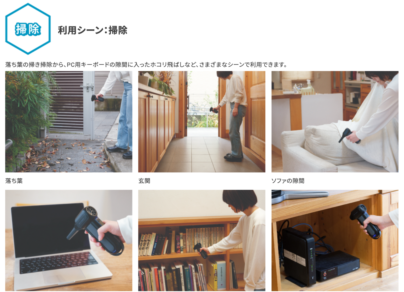 【お掃除】 キーボードの隙間や本棚のホコリ飛ばし、玄関掃除に。